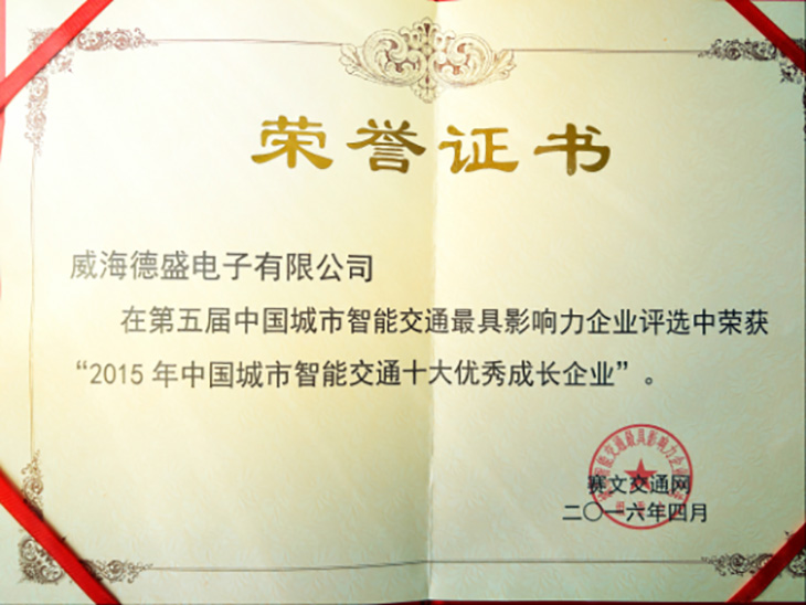 德盛电子凭借的市场表现在本届中国城市智能交通影响力企业评选中荣获“2015年中国城市智能交通十大成长企业”和“2015年中国智能交通企业品牌建设团队”奖。