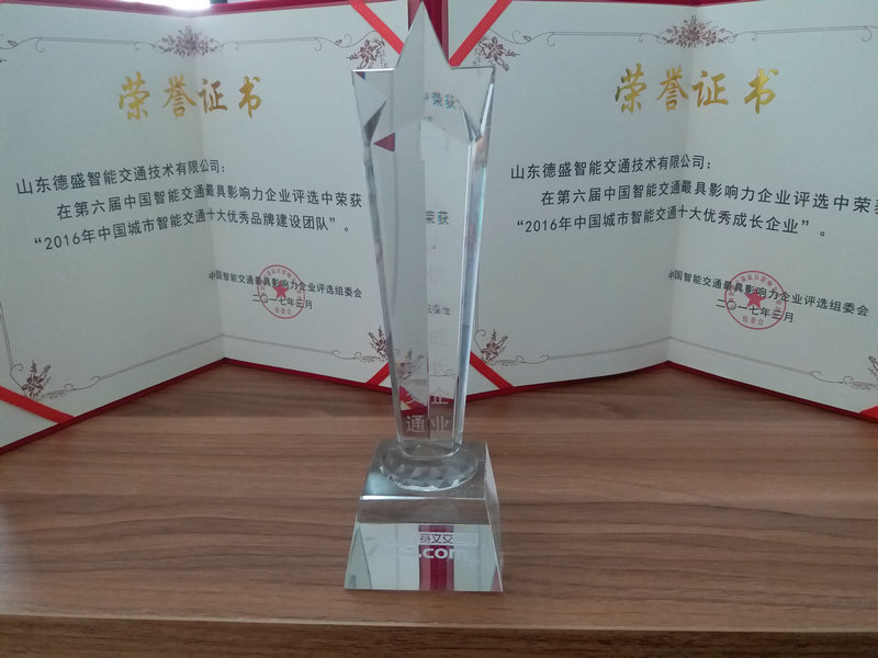 本次评选活动是由赛文交通网根据2016年智能交通企业业绩增长率等数据进行分析而评选出的结果。在此盛会,山东德盛智能交通技术有限公司凭借可靠产品、较高企业业绩增长率赢得参评专家的一致青睐,再次荣获第六届“2016年中国城市智能交通十大成长企业”,同时凭借公司多年的精心经营喜获“2016年中国城市智能交通十大品牌建设团队”。